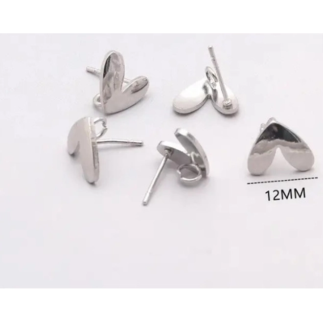 GORGEOUS SMALL SILVER COLOUR HEART WITH STAINLESS STEEL POSTS. THE POSTS ARE ROUND SO THEY DO NOT DAMAGE YOUR EAR. 12MM WIDE HEART, SOLD IN PAIRS